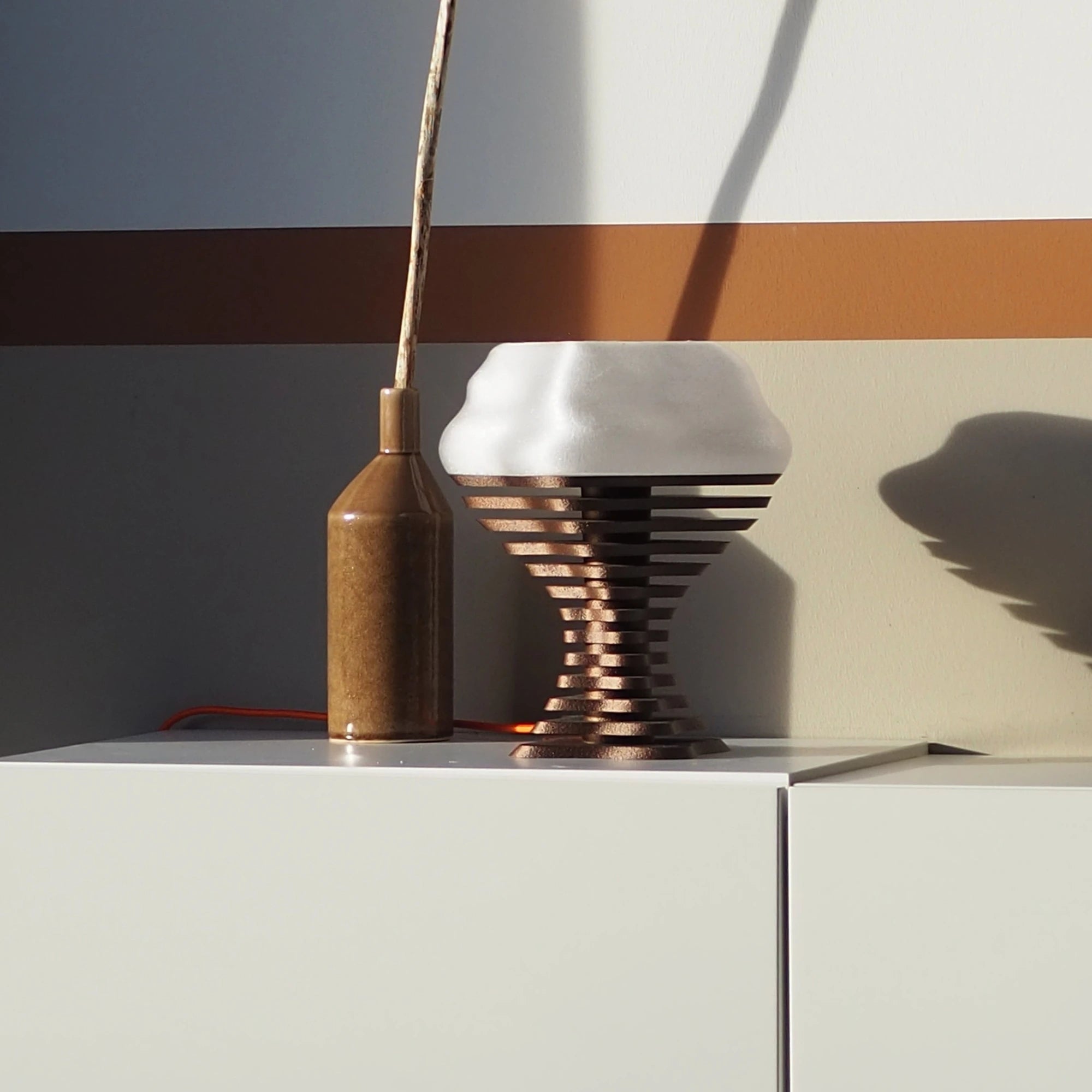 Each lamp is printed to order in our Amsterdam studio, using biobased PLA and recycled PETG.